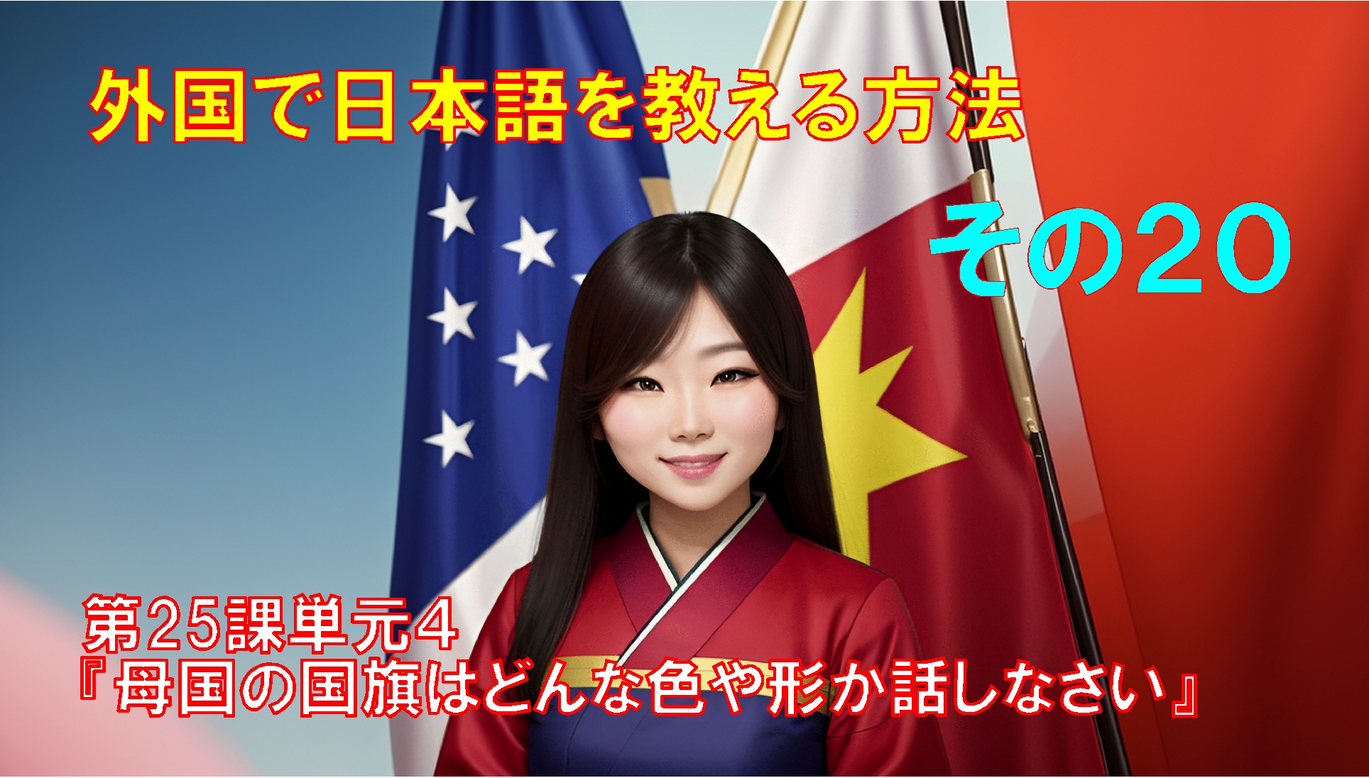 佐藤:前回、形と色の形容詞否定表現をやったけど、今回はその応用展開ね。テーマは『母国の国旗はどんな色や形か話しなさい』よ。