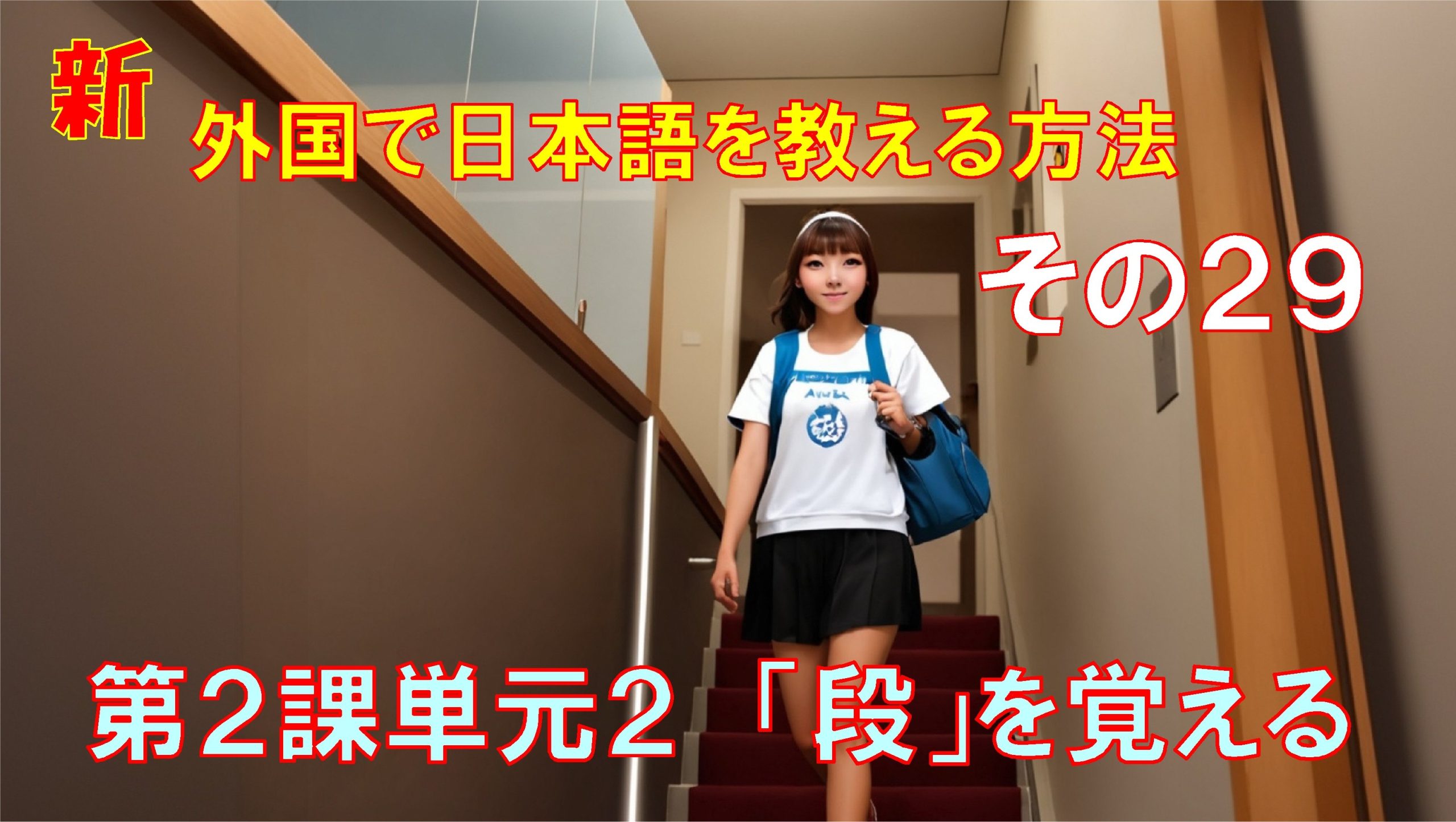 佐藤:今日は、前回の「行」の指導の続きで、「段」の指導を行います。そして、これが、今日のスクリーン図ね。教室には、常時4つの基本文型表とか、50音表を貼っておくといいわね。これから、行う「濁音」、「半濁音」、「拗音」でも使えるし。