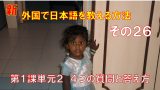 35.では、机の上に なにが あり、いすの 上に なにが いますか?